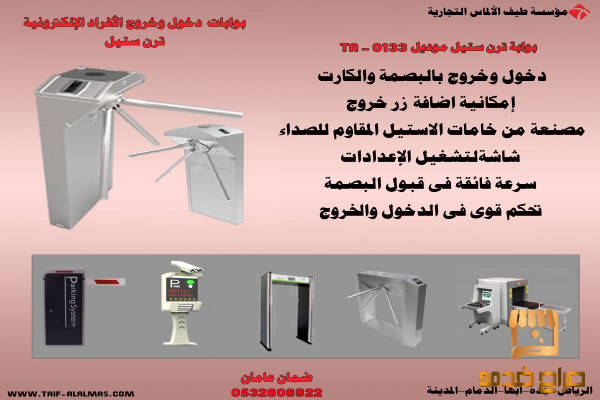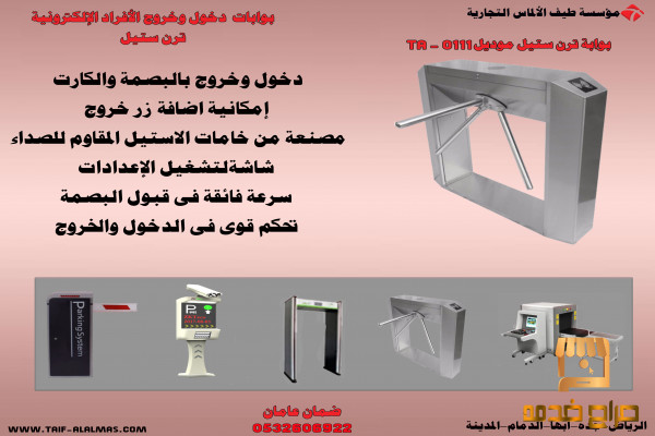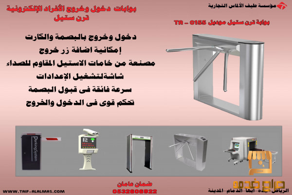 بوابات تعمل على تنظيم الدخول والخروج من من والى المكان تعمل بالبصمة والكارت