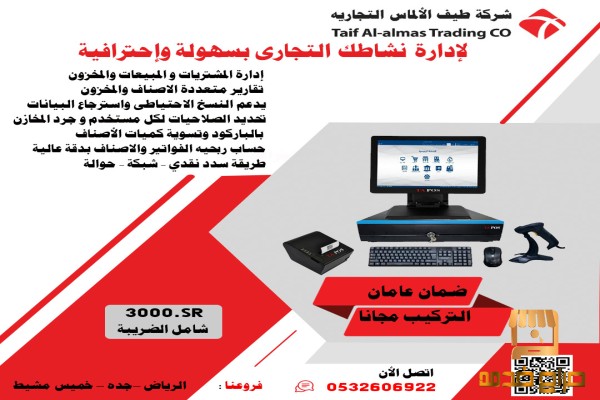 عرض على نظام كاشير كامل الاجهزة مع برنامج المخزون والمبيعات والمشتريات يدعم الفاتورة الالكترونية ومرخص من هيئة الذكاة والضريبة والجمارك