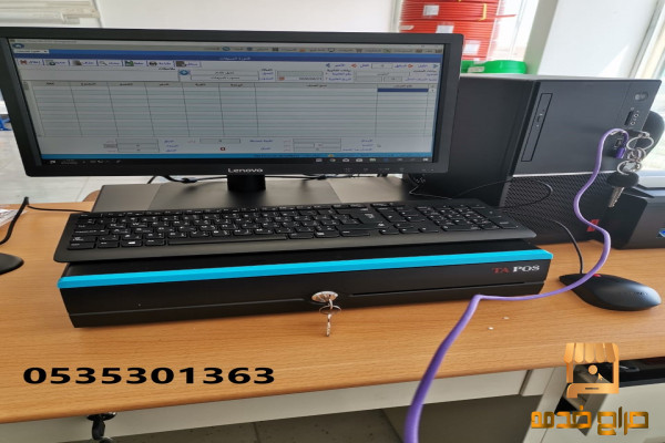 ● جهاز حاسب الى عالى الجودة برنامج المخازن والمبيعات درج الكاشير الالكترونى خمس فتحات قارئ الباركود طابعه الفواتير سعره 3400 ريال غير شامل الضريبه
