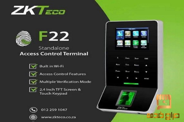 •توفر F22 تجربة لمس فائقة مع لوحة مفاتيح تعمل باللمس ، وتوفر المرونة للتثبيت المستقل أو مع أي لوحة تحكم للدخول من جهة خارجية تدعم إشارة قياسية من wiegand. كما يتوفر TCP / IP و RS485 و Wi-Fi بحيث يمكن استخدام الجهاز في شبكات مختلفه