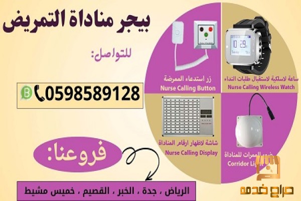 بيجر جهاز للمستشفيات للتواصل الأسرع و الأسهل بين الطبيب و الممرضة و المريض . جهاز مناداة يستخدم في المستشفيات و العيادات و جميع مراكز الخدمات الطبية . يقوم بإصدار صوت و ضوء عند طاقم التمريض . حيث يقوم بإظهار رقم الغرفة علي لوحة موجودة في غرفة التمريض .