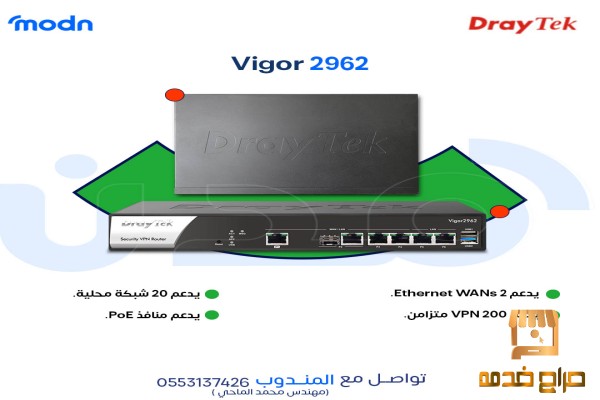 • إمكانية إضافة خط إنترنت احتياطي لضمان استمرار العمل وعدم الانقطاع مع إمكانية دمج السرعات باستخدام حلول ربط المواقع.