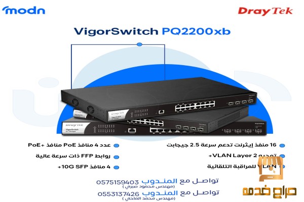 • سويتش درايتك VigorSwitch PQ2200xb بسرعة 2.5 جيجابايت ودعم PoE