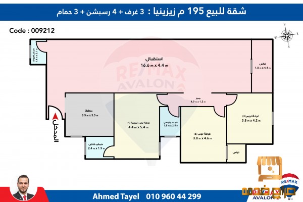 شقة للبيع 195 م زيزينيا ( ش مصطفي عبد الرازق ) - 3,750,000 ج كاش - الوكيل/ احمد طايل 01096044299