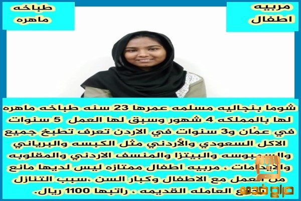 لدينا مجموعه من العملاء يرغبون في خادمات للتنازل الفوري من جميع ىالجنسيات