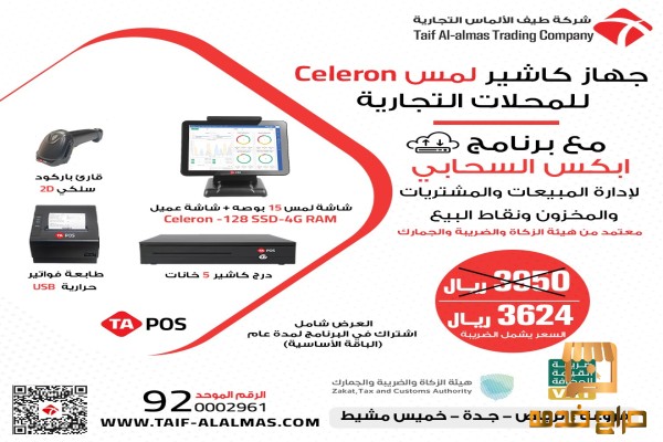 جهاز كاشير للمحلات التجارية مع برنامج أبكس لإدارة المخزون والمبيعات و المشتريات و نقاط البيع