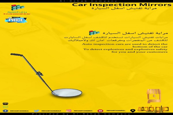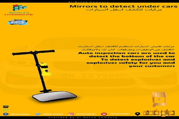 مرايا للكشف أسفل السيارة، مزودة بعجل لسهولة الحركة مع وسيلة اضاءة