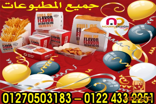 للمطاعم والفنادق (منيوهات / علب برجر / باكيت بطاطس / أكواب /يفط)