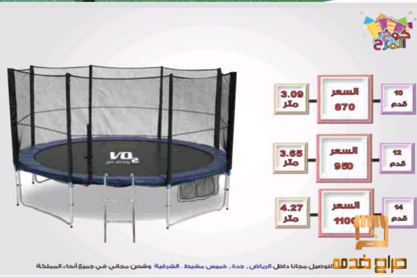 بأقل الأسعار مع التوصيل مجاني لكافة مدن المملكة يوجد للبيع نطيطات شبك ترامبولين دائرية الشكل مع شبك حماية ويوجد نطيطة شبك صغيرة ونطيطة شبك كبيرة المقاسات نطيطات ترامبولين