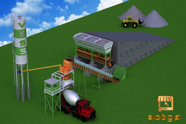 مصنع خرسانة كامل من جميع المعدات اللازمة للإنتاج .