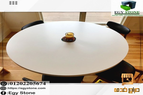 مواد حديثة مثل الرخام الصناعي، الجرانيت، الزجاج الحراري، أو الخشب المعالج.