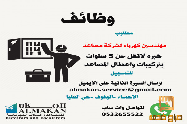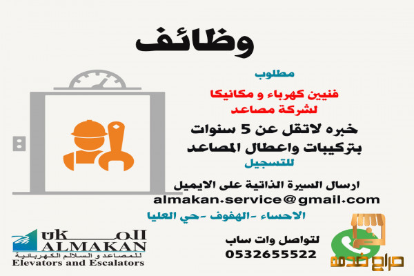 - فني كهربائي ومكنيكي صيانة مصاعد